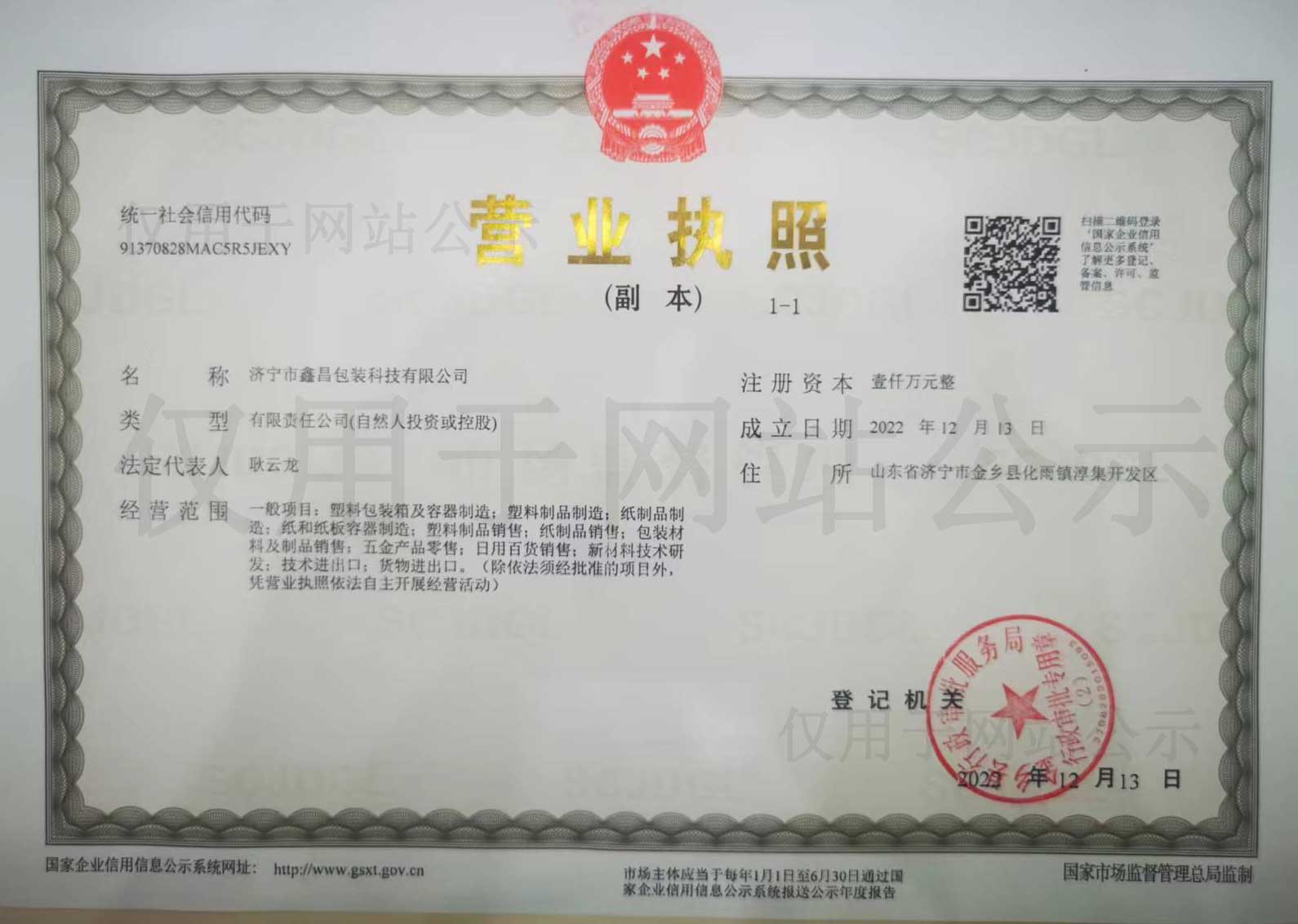 濟(jì)寧市鑫昌包裝科技有限公司成立于2022年,是一家以吹塑、印刷、復(fù)合、制袋為主要生產(chǎn)工藝的塑料包裝加工企業(yè)。公司位于全國(guó)蒜都—山東金鄉(xiāng),廠(chǎng)區(qū)占地32畝,生產(chǎn)用房10000余平米。公司現(xiàn)擁有吹塑機(jī),印刷機(jī),復(fù)合機(jī),制袋機(jī)70余臺(tái)套,員工60余人,專(zhuān)業(yè)技術(shù)人員20余人,是一家標(biāo)準(zhǔn)化規(guī)范化的塑料包裝生產(chǎn)企業(yè)。?